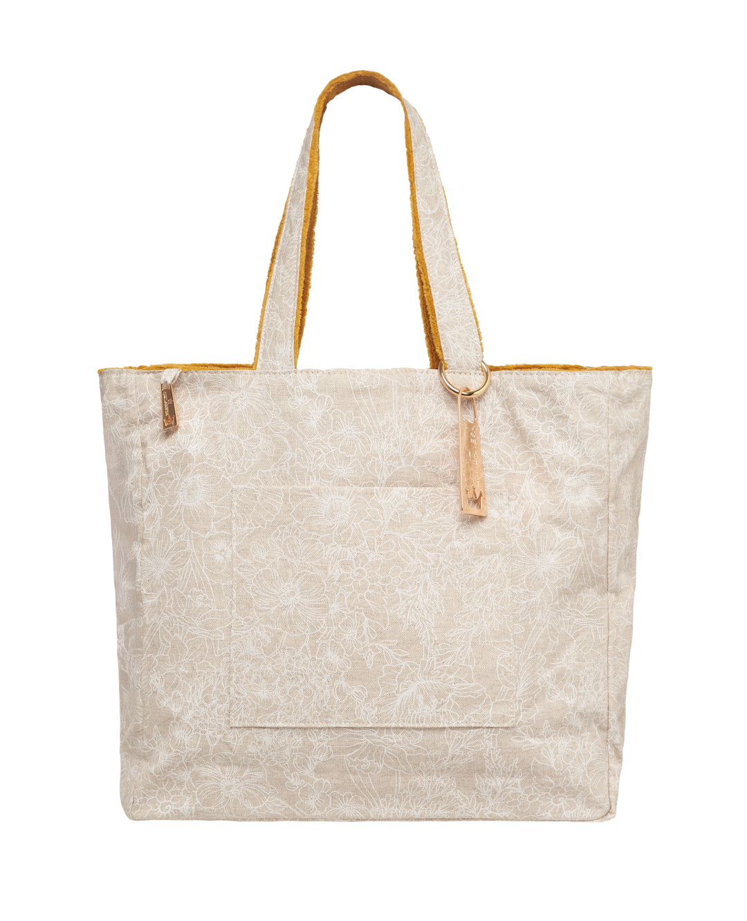 Fabric shopper embellished with elegant tone-on-tone floral embroidery. Spacious and functional, it's ideal for everyday use and for those seeking a practical bag without sacrificing a refined, feminine aesthetic.