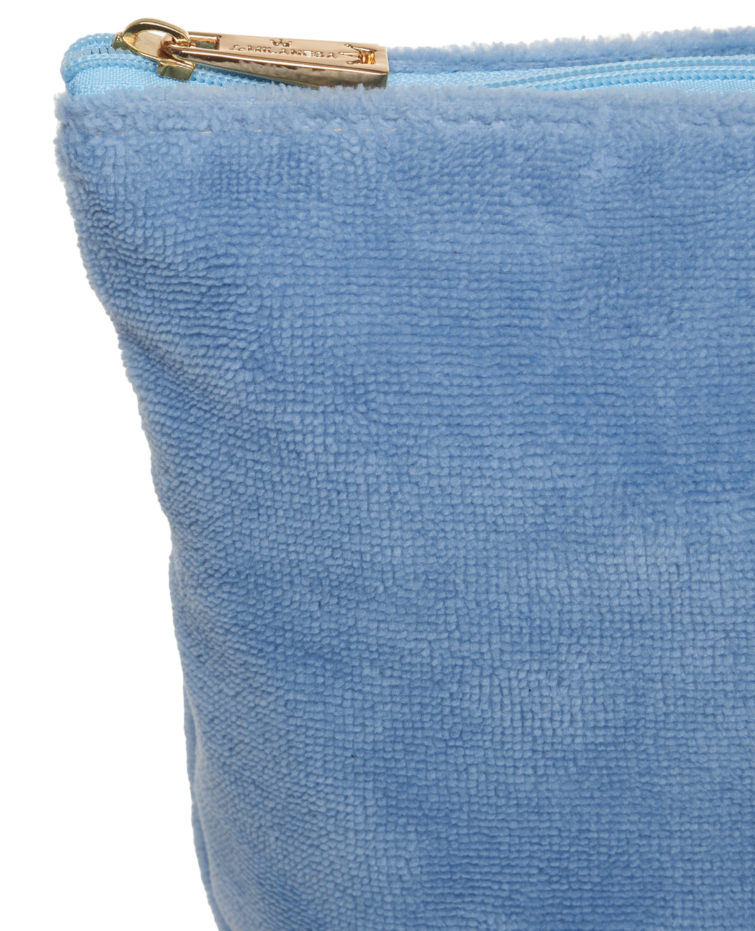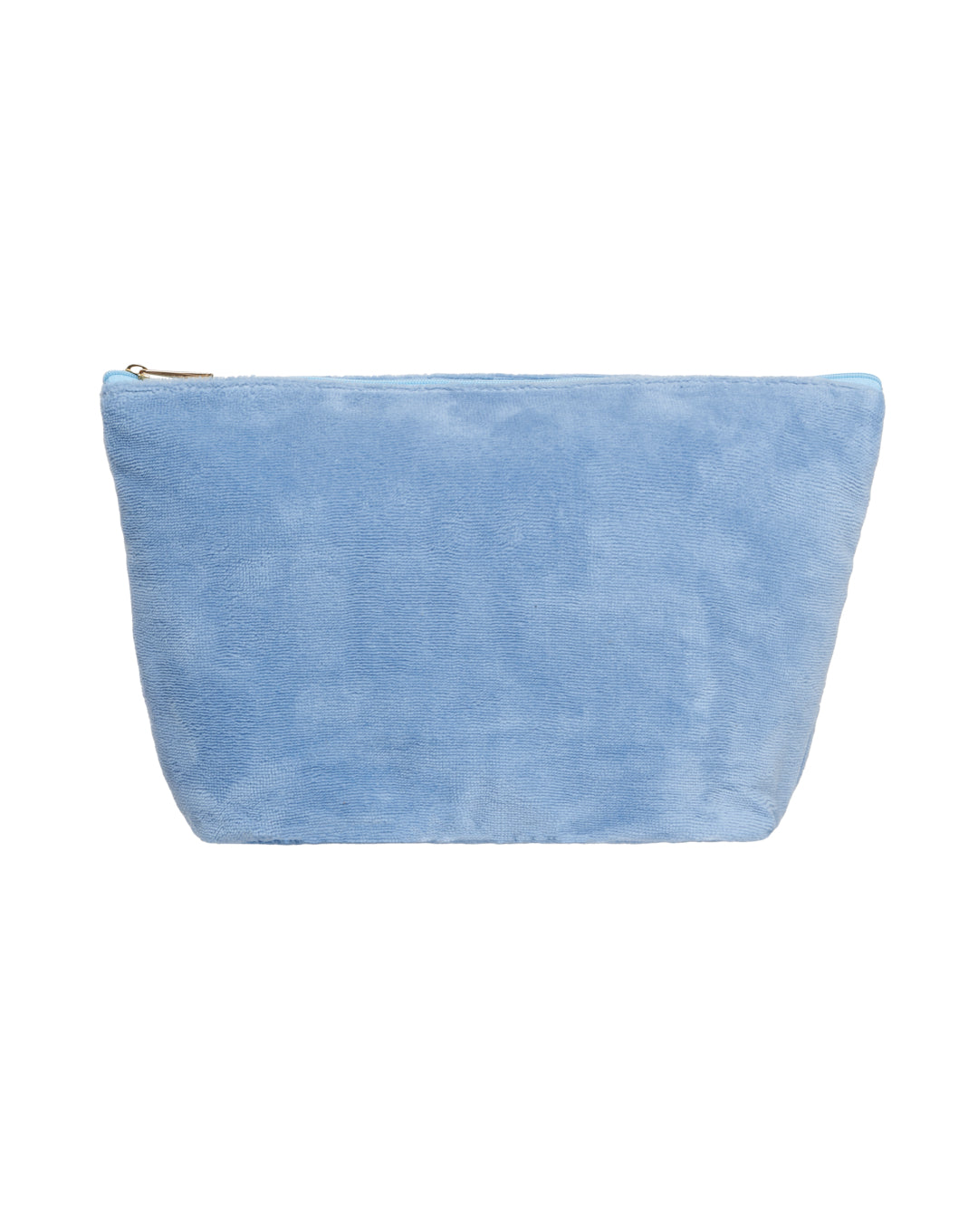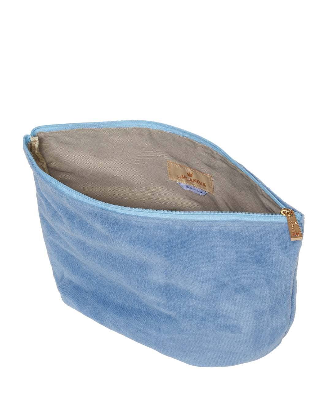 Light blue velvet clutch bag with a simple, modern design. Soft and pleasant to the touch, it's a practical and refined accessory, ideal for everyday use or as a coordinated complement to other bags.