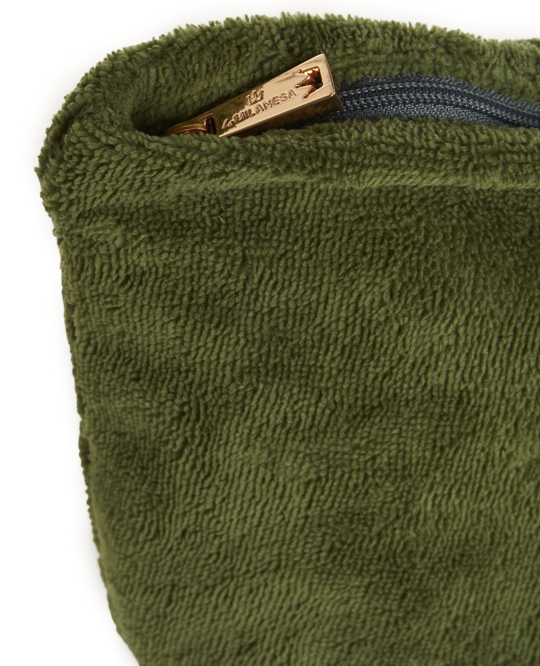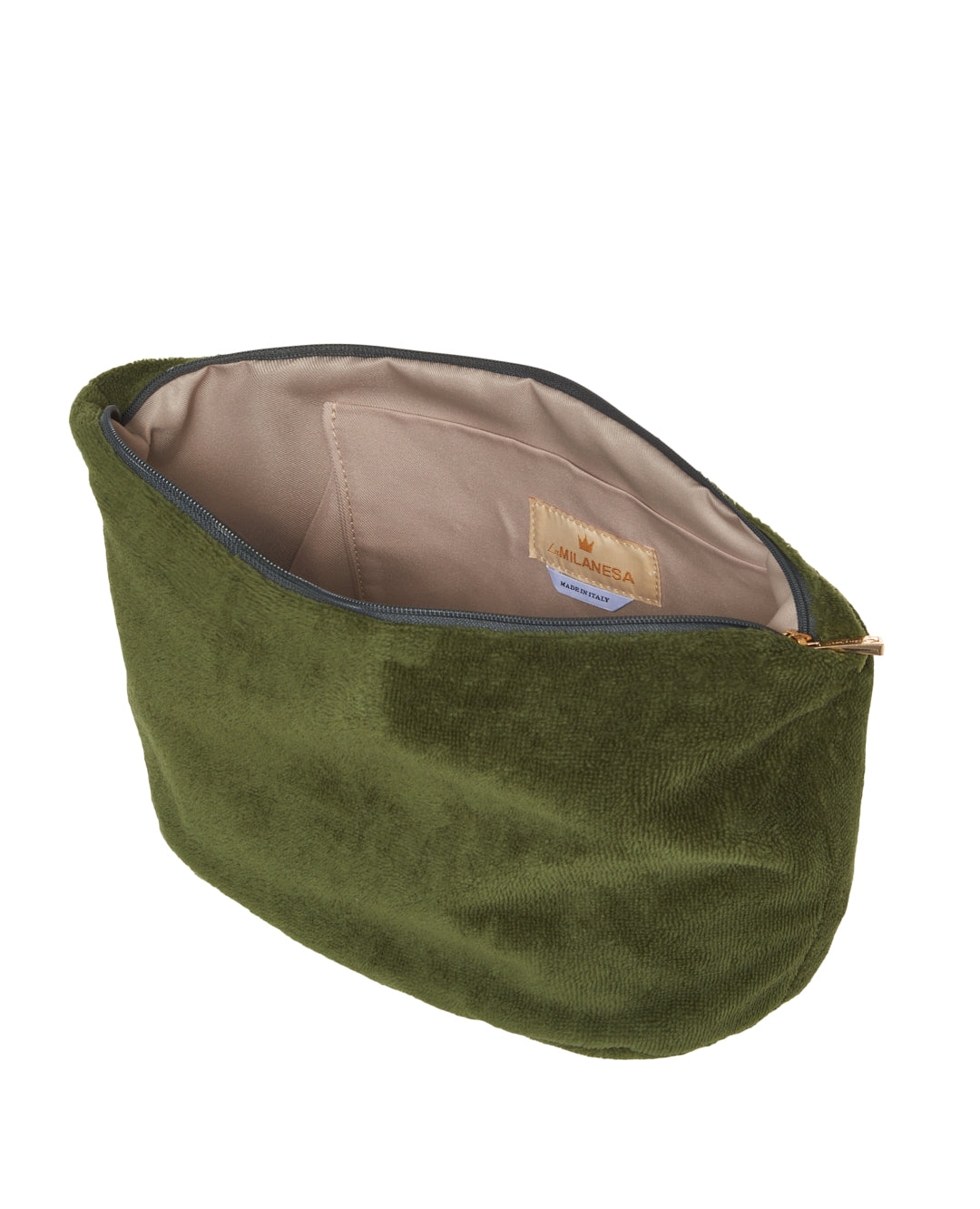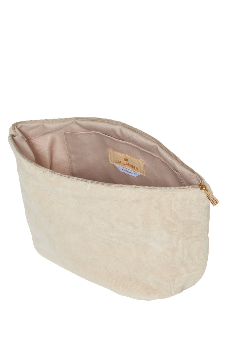Light blue velvet clutch bag with a simple, modern design. Soft and pleasant to the touch, it's a practical and refined accessory, ideal for everyday use or as a coordinated complement to other bags.